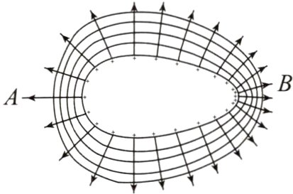 2.B边电势降落得快。因为相邻两条等势线之间的电势差是相等的,等势线越密集的地方,相邻两条等势线之间的距离d越小,说明电势降落得越快。