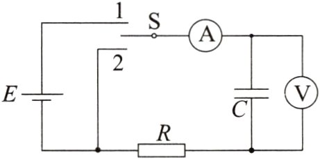 (一)把直流电源、电阻、电容器、电流表、数字电压表以及单刀双掷开关组装成实验电路,如图所示。