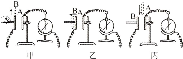 B. 甲图中将B板上移,静电计的指针偏角减小