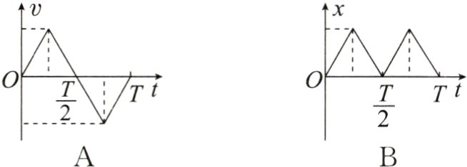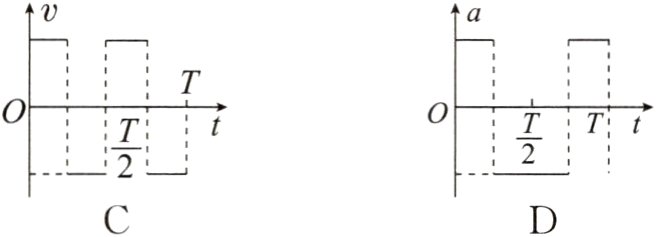 #### 3. (多选)如图甲所示,平行金属板中央有一个静止的电子(不计重力),两板间距离足够大。当两板间加上如图乙所示的交流电压后,选项中反映电子速度$v$、位移$x$和加速度$a$随时间$t$的变化规律图像,可能正确的是( )