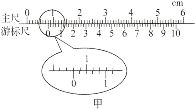 (4)待测电阻是一均匀材料制成的圆柱体,用50分度的游标卡尺测量其长度与直径,结果分别如图甲、乙所示。由图可知其长度为______cm,直径为______cm。
