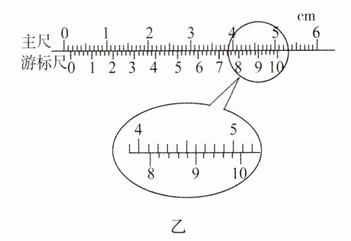 (4)题图甲读数l = 8 mm + 0×0.02 mm = 8.00 mm = 0.800 cm;题图乙读数d = 1 mm + 45×0.02 mm = 1.90 mm = 0.190 cm。