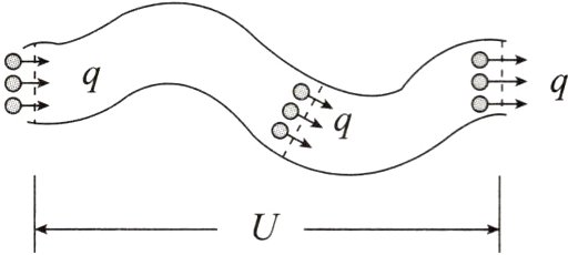 下图表示一段导体,已知这段导体两端的电势差为$U$,电荷从左向右定向移动,导体中的电流为$I$。