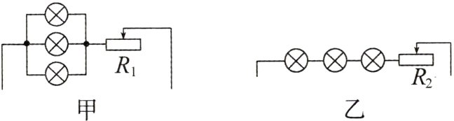 4. 把三个相同的灯泡接成如图甲、乙所示的电路,通过调节供电电压与滑动变阻器R1、R2的阻值,使两组灯泡均能正常发光,并且两电路消耗的总电功率也相同,则R1、R2满足( )