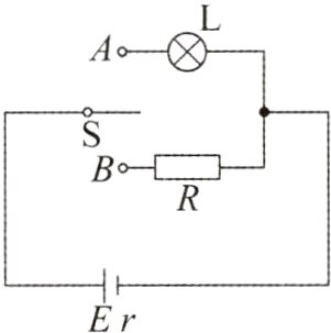 6.如图所示的电路中,当开关S接A点时,标有“4 V 8 W”的小灯泡L正常发光,当开关S接B点时,通过电阻R的电流为1 A,这时电阻R两端的电压为5 V。求: