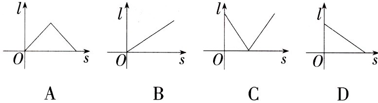 13. 抽象能力 如图,小红晚上在一条笔直的小路上由A处径直走到B处,小路的正中间有一盏路灯,那么小红在灯光照射下的影长l与她行走的路程s之间的变化关系用图像刻画出来大致是( )