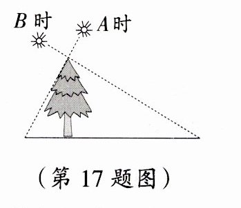 17. 如图,小明在A时测得某树的影长为2m,B时又测得该树的影长为8m,若两次日照的光线互相垂直,则树的高度为______m.