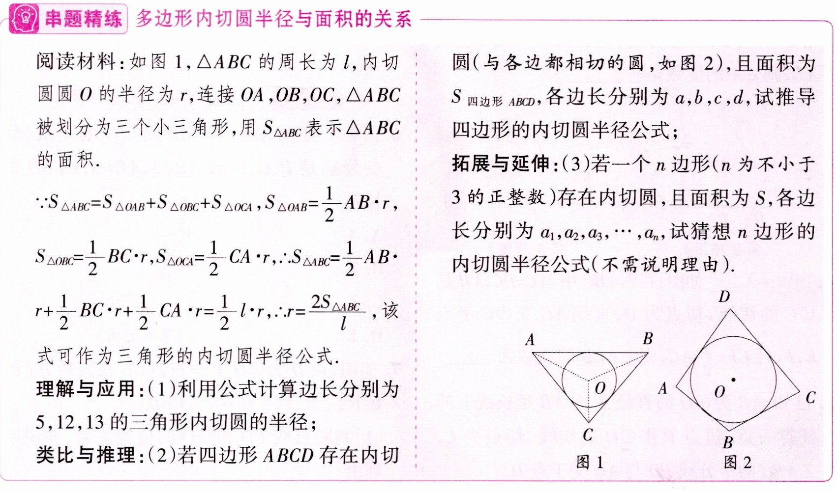 (3)r = $\frac{2S}{a_{1}+a_{2}+\cdots +a_{n}}$ (r是n边形的内切圆半径).