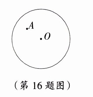 15. 在△ABC中,已知AB=AC=4 cm,BC=6 cm,P是BC的中点,以点P为圆心,3 cm为半径画⊙P,则点A与⊙P的位置关系是_______.