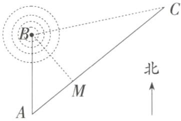 19. 应用意识 如图,城市A的正北方向50 km的B处,有一无线电信号发射塔.已知,该发射塔发射的无线电信号的有效半径为100 km,AC是一条直达C城的公路,从A城发往C城的班车速度为60 km/h.
