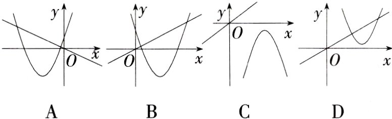7. 习题衍生 教材P55,AT1改编 已知函数$y = ax$和$y = a(x + m)^2 + n$,且$a>0,m<0,n<0$,则这两个函数在同一坐标系内的大致图像是 ( )