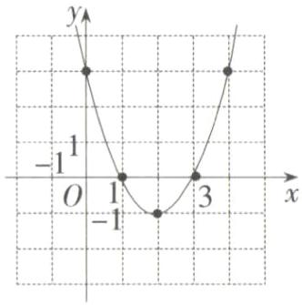 解:列表得:|$x$|$\cdots$|0|1|2|3|4|$\cdots$||$y$|$\cdots$|3|0|-1|0|3|$\cdots$|描点、连线,得如图: