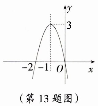 13. 习题高仿 教材P56,AT3改编 在如图所示的抛物线中,当$x =$__________时,$y = 0$;当$x<-2$或$x>0$时,$y$__________0;当$x$在 __________范围内时,$y>0$;当$x =$__________时,$y$取得最大值 __________.