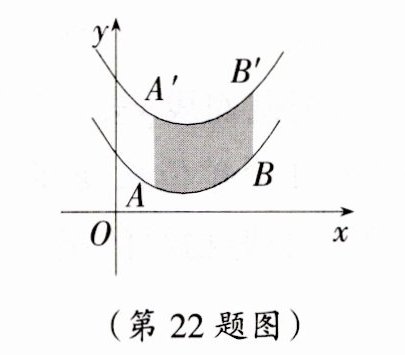 22. 转化思想 如图,将函数$y = \frac{1}{2}(x - 2)^2 + 1$的图像沿$y$轴向上平移得到新函数$y = \frac{1}{2}(x - 2)^2 + 4$的图像,其中点$A(1,m),B(4,n)$平移后的对应点分别为点$A',B'$,则曲线段$AB$扫过的面积为 ( )