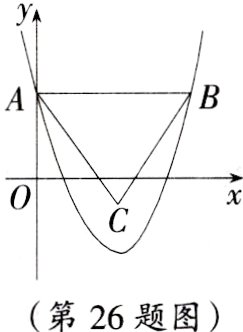 26. 较难题 如图,在平面直角坐标系中,点$A$是抛物线$y = a(x - 3)^2 + k$与$y$轴的交点,点$B$是这条抛物线上的另一点,且$AB// x$轴,则以$AB$为边的等边三角形$ABC$的周长为 ______.