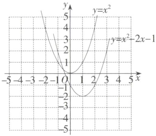 解:依题意得两次平移后得到$y = (x - 1)^2 - 2 = x^2 - 2x + 1 - 2 = x^2 - 2x - 1$的图像,$\therefore$平移后图像的表达式为$y = x^2 - 2x - 1$.画图如图所示: