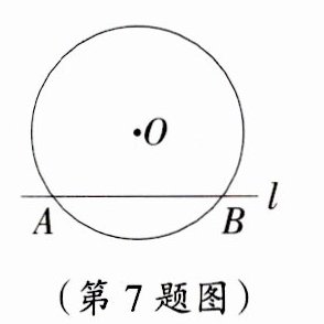7. [习题变式教材P7,BT1改编]如图,在半径为5 cm的⊙O中,直线l交⊙O于A,B两点,且弦AB=8 cm,要使直线l与⊙O相切,则需要将直线l向下平移 ( )