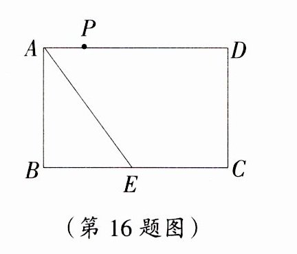 16. [方程思想]如图,矩形ABCD中,AB=4,BC=6,E是边BC的中点,点P在边AD上,设DP=x,若以点D为圆心,DP为半径的⊙D与线段AE只有一个公共点,则所有满足条件的x的取值范围是__________.