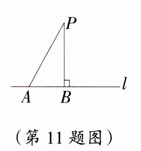11. 如图,PB⊥AB于点B,若以点P为圆心,PA的长为半径作圆,所得的圆与直线l的位置关系是 ( )