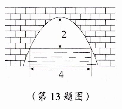 13. 模型观念 如图所示的是一个横断面为抛物线形状的拱桥,当水面宽4 m时,拱顶(拱桥洞的最高点)离水面2 m,水面下降1 m时,水面的宽度为____ m.