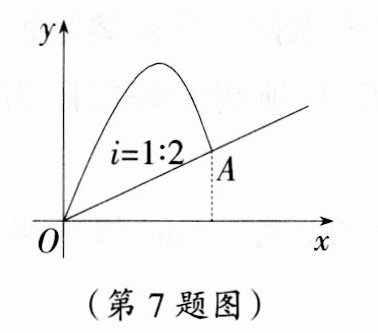 7. 如图,一网球从斜坡的点O处抛出,网球的飞行路线为抛物线,其表达式为$y=-\frac{1}{2}x^{2}+4x$,斜坡OA的坡度i=1:2,则网球在斜坡的落点A处的垂直高度是 ( )