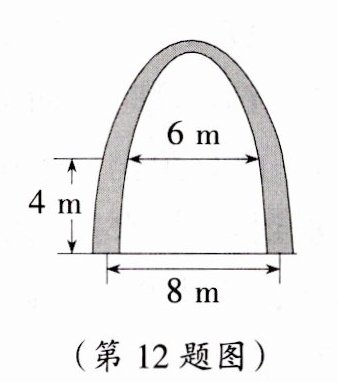 12. 如图,某大学的校门是抛物线形水泥建筑物,大门的地面宽为8 m,两侧距地面4 m高处各有一个挂校名横幅用的铁环,两铁环的水平距离为6 m,则校门的高为________ m. (精确到0.1 m,水泥建筑物厚度忽略不计)