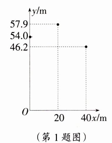 1. 跳台滑雪是冬季奥运会比赛项目之一,运动员起跳后的飞行路线可以看作是抛物线的一部分,运动员起跳后的竖直高度y(单位:m)与水平距离x(单位:m)近似满足函数关系y = ax² + bx + c(a≠0)。如图记录了某运动员起跳后的x与y的三组数据,根据上述函数模型和数据,可推断出该运动员起跳后飞行到最高点时,水平距离为__________m。