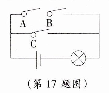 17. 跨学科 如图,随机闭合开关A,B,C中的一个,灯泡发光的概率为______.