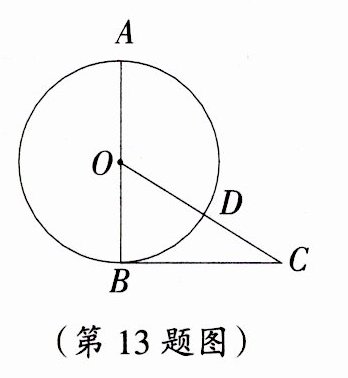 13. [方程思想]如图,AB是⊙O的直径,O是圆心,BC与⊙O相切于点B,CO交⊙O于点D,且BC=8,CD=4,那么⊙O的半径是________.
