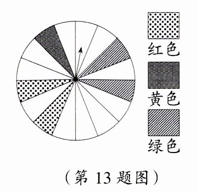 13. 如图,小明用转盘设计了一个游戏(转盘被均分成16份),随意转动转盘,转盘停止转动后,如果指针指向红色,则甲胜;如果指针指向黄色,则乙胜.你认为这个游戏 ______.(选填“公平”或“不公平”)