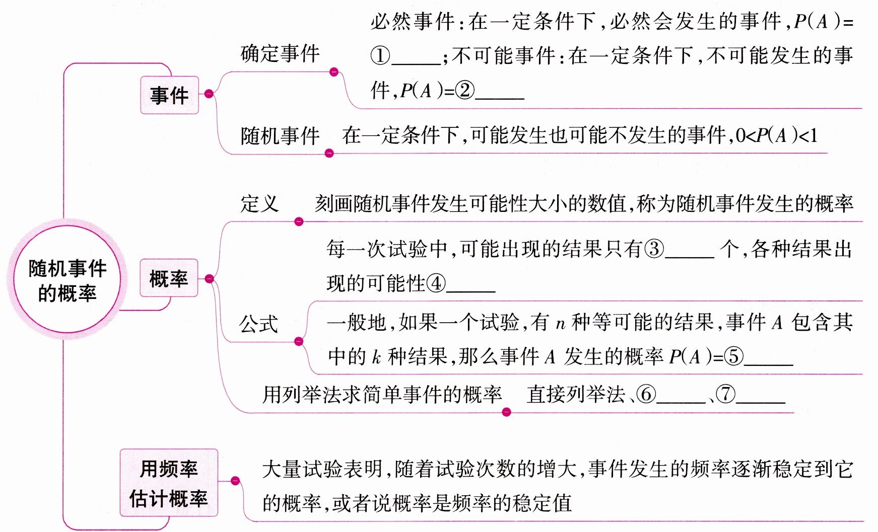 @@③有限;④相等;⑤$\frac{k}{n}$;⑥列表法;⑦画树形图法