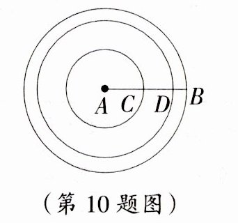 10. 如图,点C,D在线段AB上,且AC:CD:DB=3:2:1.以点A为圆心,分别以线段AC,AD,AB为半径画同心圆,记以AC为半径的圆为区域Ⅰ,CD所在的圆环为区域Ⅱ,DB所在的圆环为区域Ⅲ.现在此图形中随机撒一把豆子,统计落在Ⅰ,Ⅱ,Ⅲ三个区域内的豆子数.若大量重复此试验,则 ( )