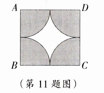 11. 几何概率 如图,在正方形ABCD中,分别以四个顶点为圆心,以边长的一半为半径画圆弧,若随机向正方形ABCD内投一粒米(米粒大小忽略不计),则米粒落在图中阴影部分的概率为 _______.