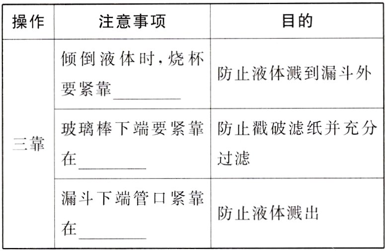 漏斗内壁 漏斗 滤纸 玻璃棒 三层滤纸上 烧杯内壁