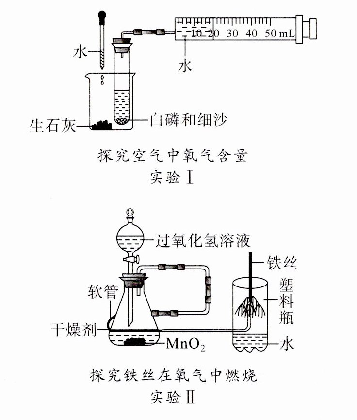 (2)实验Ⅱ,打开分液漏斗活塞,通入干燥氧气约十秒,引燃铁丝下端的火柴,伸入塑料瓶内,并对准玻璃管上方,可观察到铁丝剧烈燃烧,实验装置改进后的优点是________(填序号)。