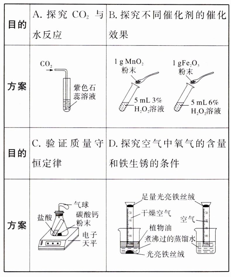 3.(2024·湖北)同学们设计的下列实验方案(夹持装置已略去),能达到目的的是 ( )