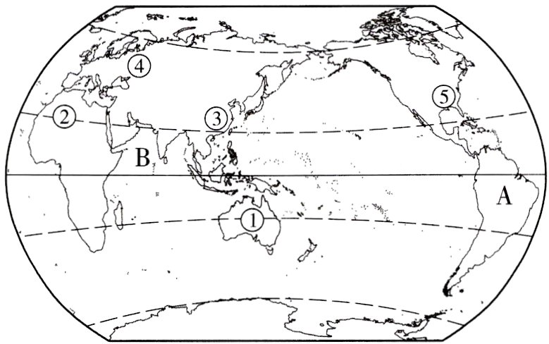 1. 下图中的阴影表示世界人口密度最大的地区,读图,回答下列问题。