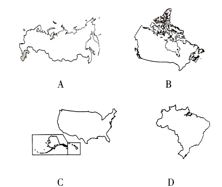 解析:这道题主要考查轮廓图及联合国总部位于哪个国家这个知识点。首先联合国的总部设在美国纽约,再次美国的轮廓图是C,因此答案是C。
