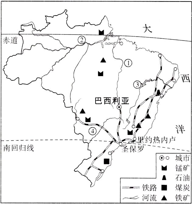 ### 2. 读巴西简图,完成下列各题。