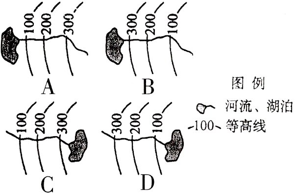 4. 下列图示能正确表示河流流入湖泊的是( )