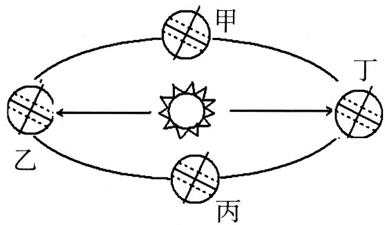 解析:在读该地球公转轨道图时,突破点在乙或丁处。从乙处可以看出太阳的直射点在北回归线上,故为夏至;丁处太阳直射点在南回归线上,为冬至;甲、丙处分别为春分和秋分。根据题意,漠河的白天不足7小时,那么太阳直射点在南回归线附近,也即运行到丁处附近。故选D。