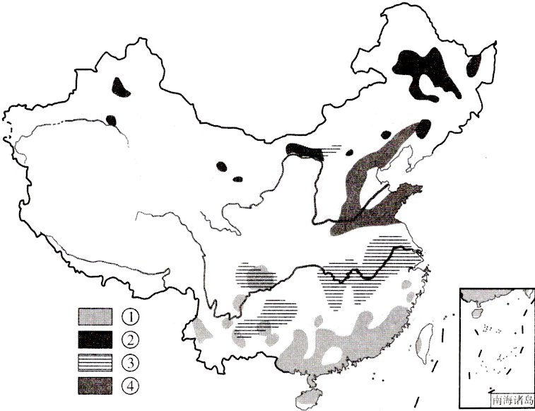 (1)图中表示甘蔗分布的是________(填数码代号),其最大产区位于__________(省级行政单位)。