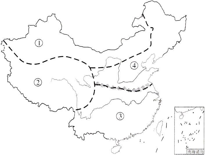 2. 下图为我国四大地理区域略图,读图回答问题。