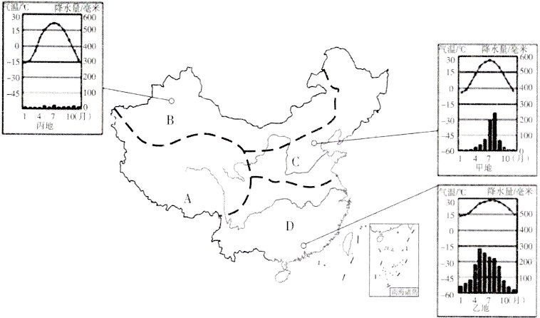 (3)甲地与乙地相比,冬季气温较低的是______地,导致这种差异的主要因素是______;甲地与丙地相比,年降水量较少的是______地,导致这种差异的主要因素是______。