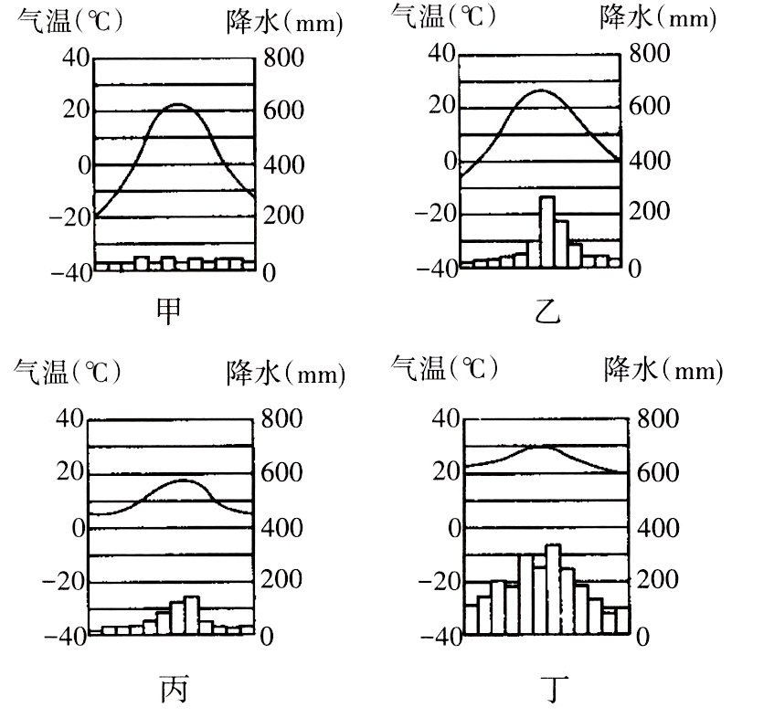 例1:下列哪一幅图,最能代表东北地区的气候类型的是 ( )