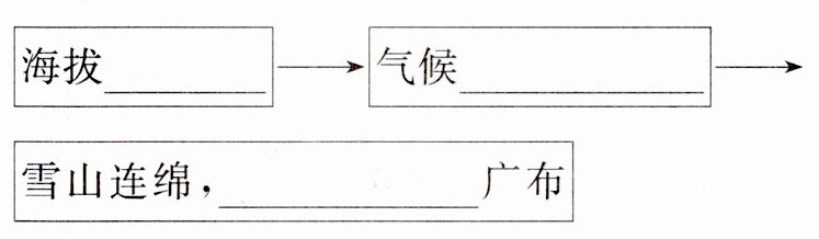 (2)西藏的发展与自然条件有关,请完成西藏自然要素关联图。