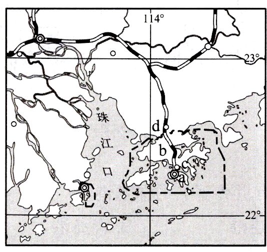 香港、澳门是我国的特别行政区,位于珠江口两侧,为自由港,对外贸易发达。据此,回答15~16题。