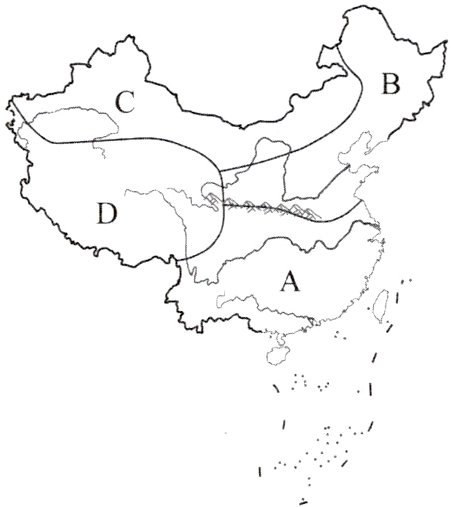 (1)图中字母代表中国的四大地理区域,它们分别是A南方地区、B北方地区、C ______ 地区、D ______ 地区。根据艾草的生长习性,能够广泛生长的有 ______ (双选)地区。