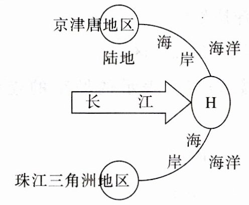 下面为H地区地理位置示意图,该地区是我国城市分布最密集、经济发展水平最高的地区。读图,完成17~18题。