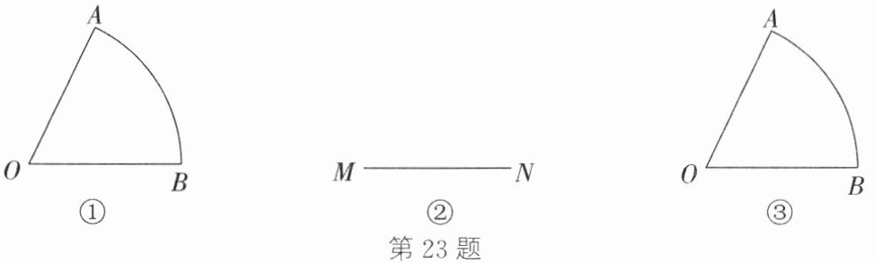 23. (8分)问题提出:如何用圆规和无刻度的直尺作一条直线或圆弧平分已知扇形的面积?